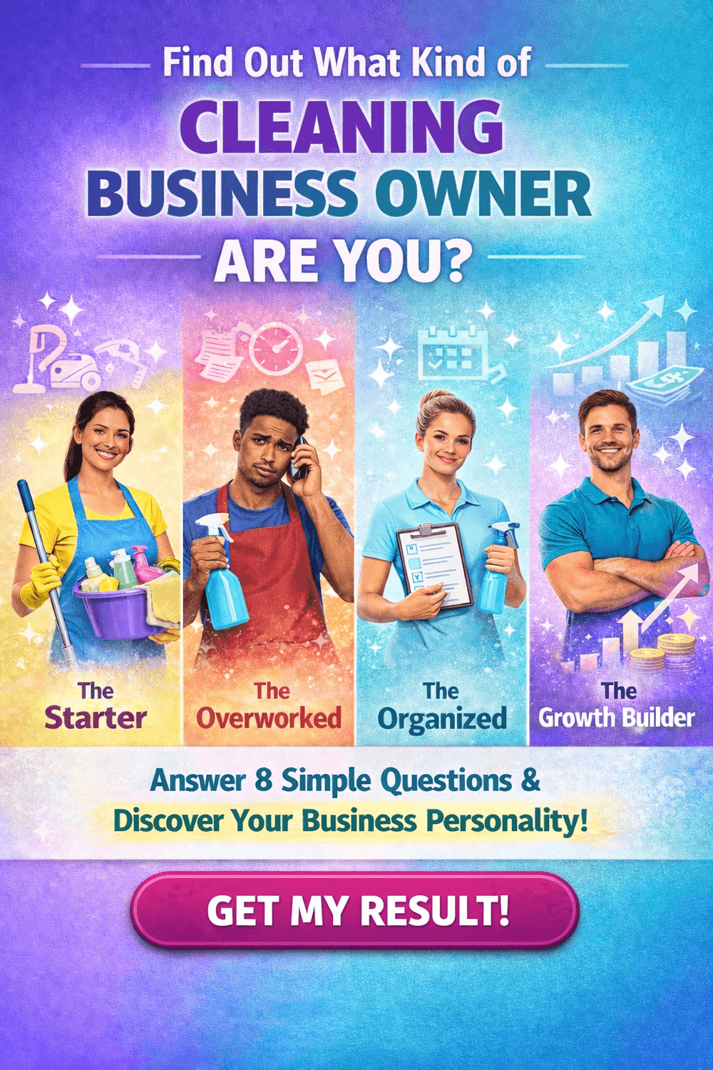 Take the quick 1- minute quiz with 8 questions and discover your cleaning business personality.